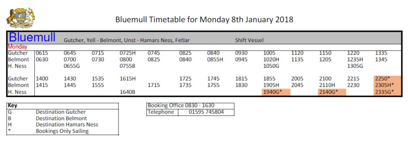THE BLUEMULL Sound ferry service between Yell, Unst and Fetlar is running to an amended timetable after the MV Geira developed an engine problem.