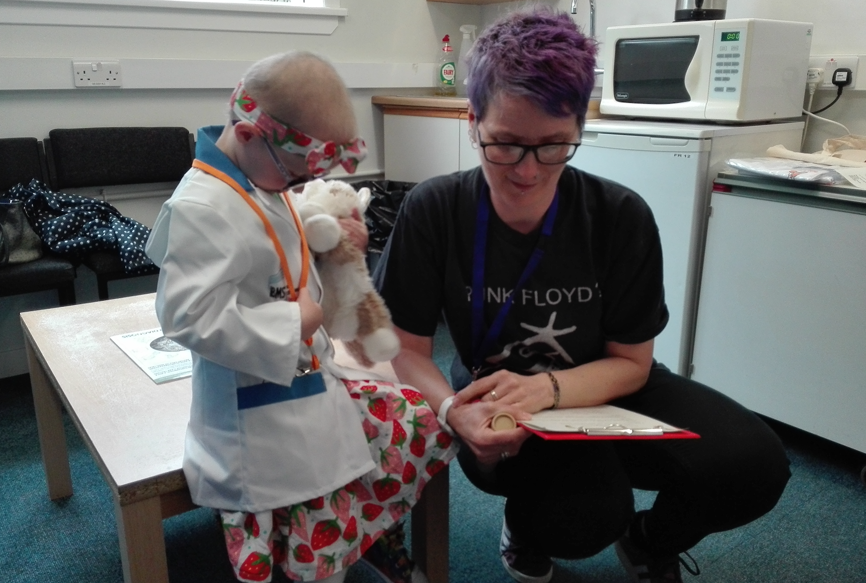 During the day of their visit, the children are made a ‘trainee biomedical scientist’ and they are shown the laboratory machines before getting to meet the staff.