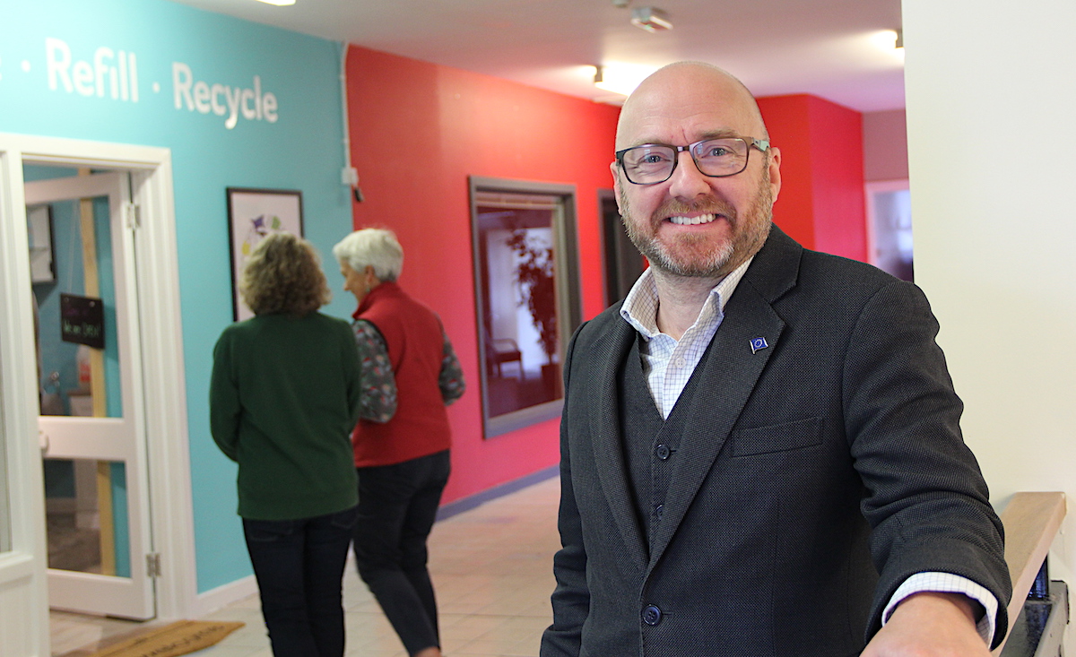 Patrick Harvie helped to launch an extension to the Why Waste? eco shop in Lerwick as he arrived in Shetland to campaign in the by-election