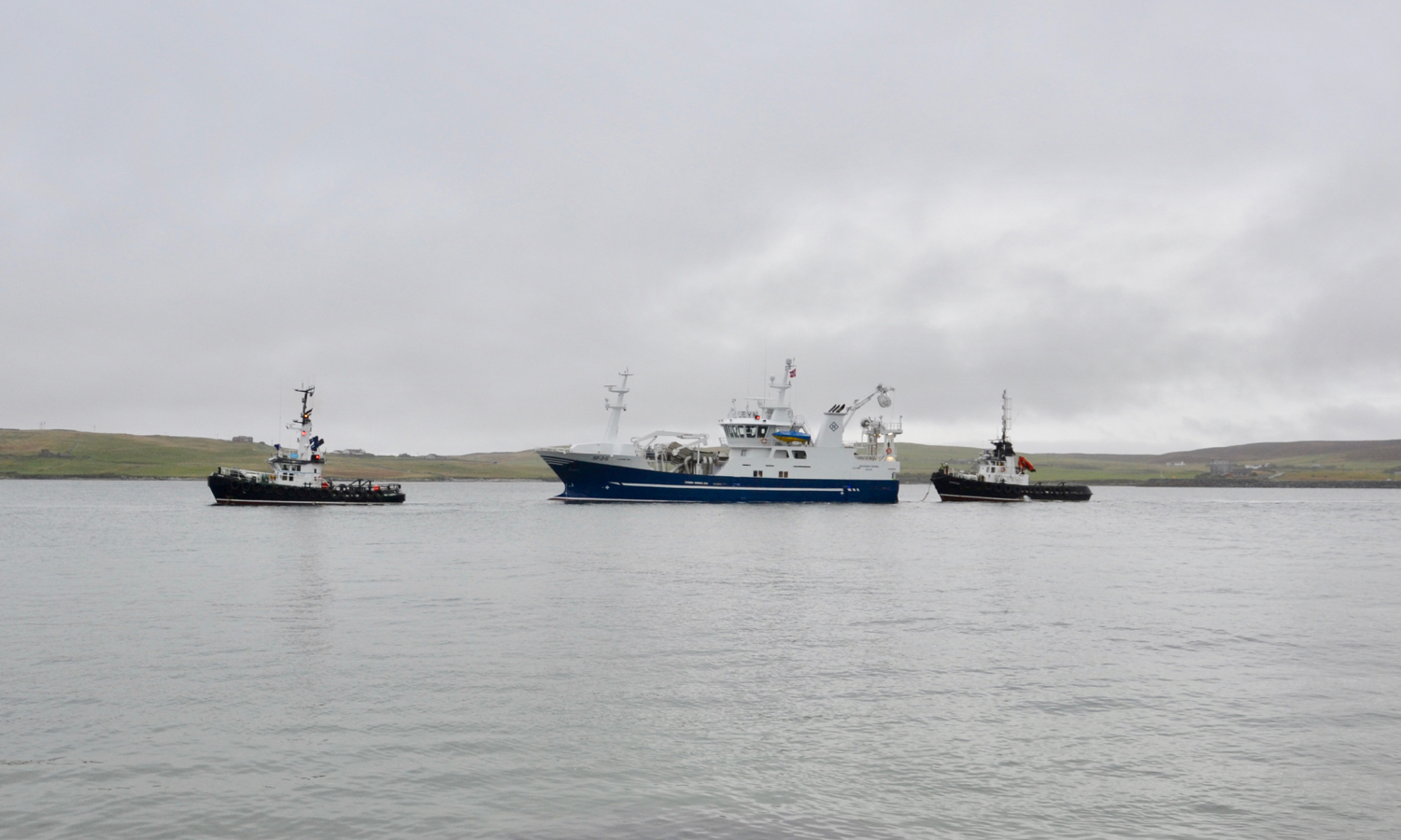 The Hovden Viking was initially towed in by another fishing boat before Lerwick Port Authority tugs helped her into Victoria Pier (pictured above).