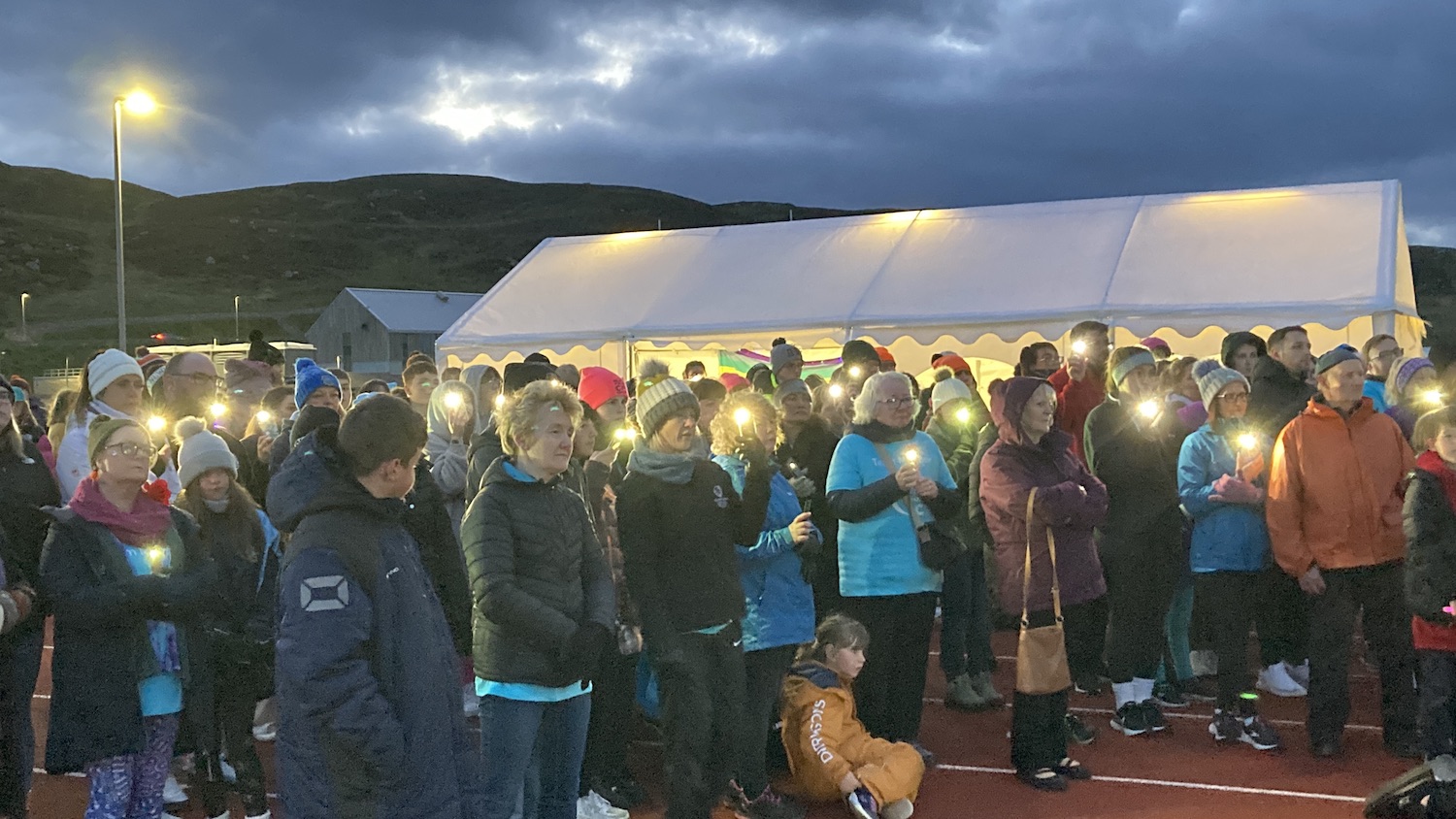 However, people were asked to turn on lights on their phones and hold them aloft while names of loved ones were displayed on a screen – all while a lit-up sign saying hope/cure overlooked the Clickimin.