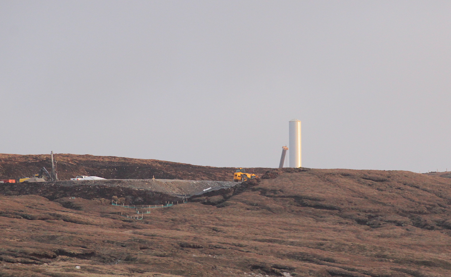 The first two sections were assembled at a turbine site in North Nesting and is visible from the A970, south of the Vidlin junction.