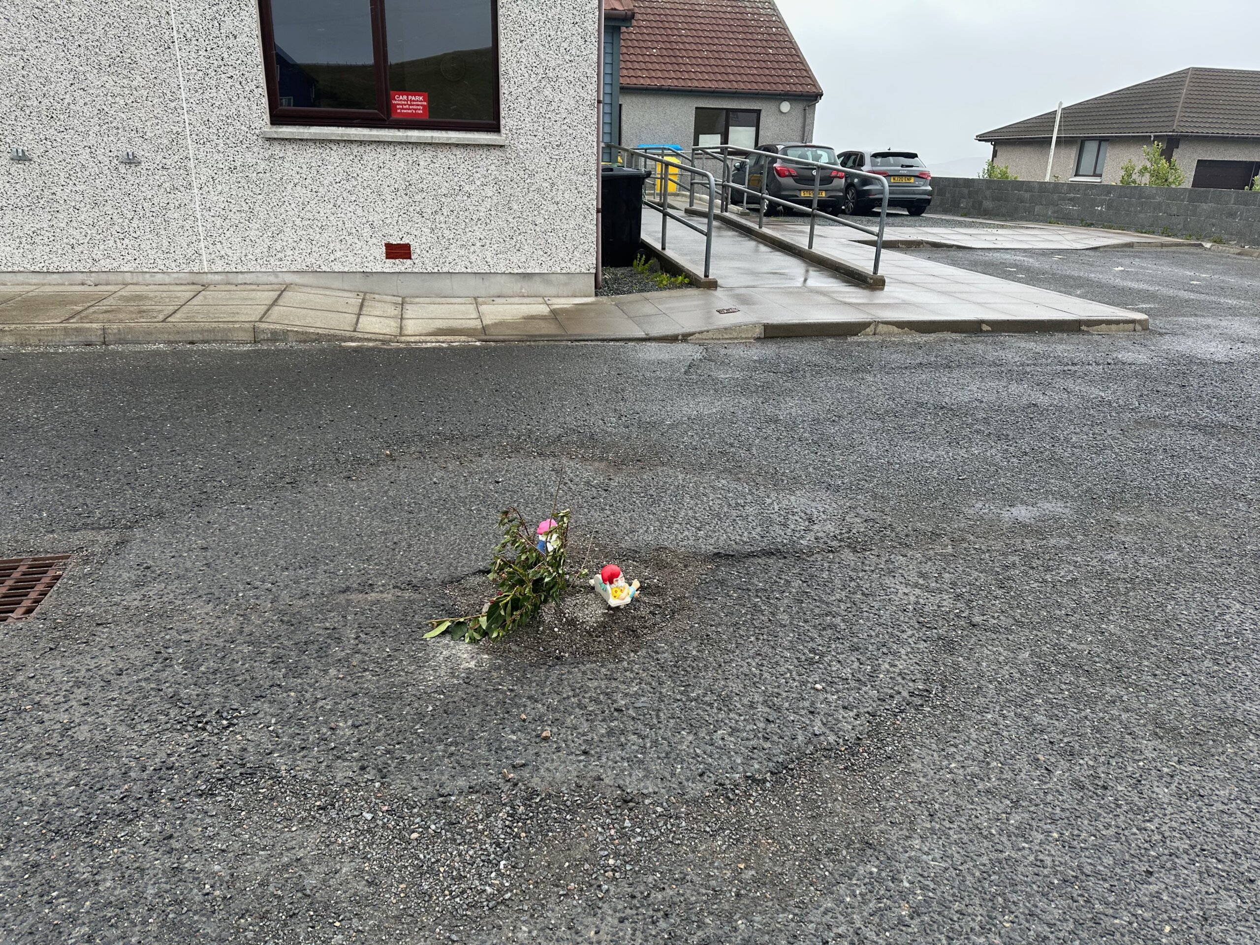 A local resident was overheard saying that, perhaps NHS Shetland would dispossess the gnomes of their new home by fixing the pothole.