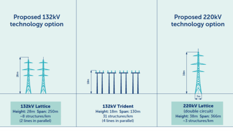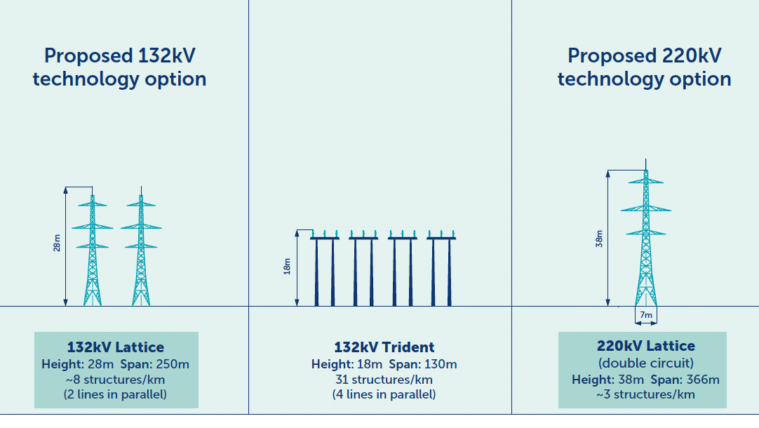 Smaller 132kV lattice towers, at 28m high, will link the existing Kergord substation to the possible second building.