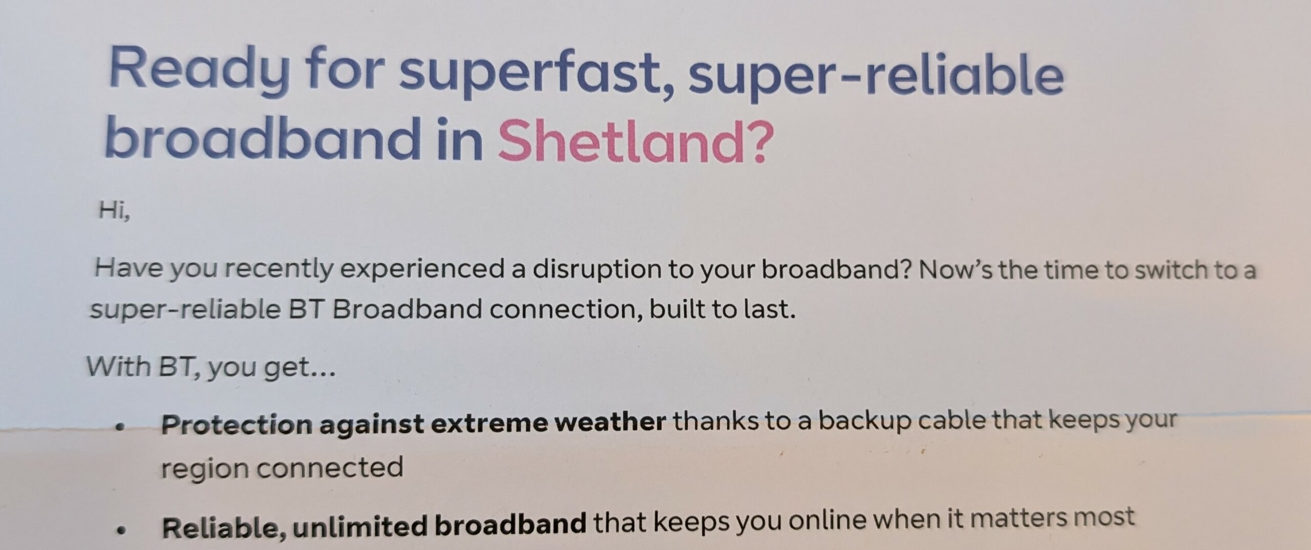 Shetland News contacted Openreach last week about the matter, but the company passed the request onto the BT Group.