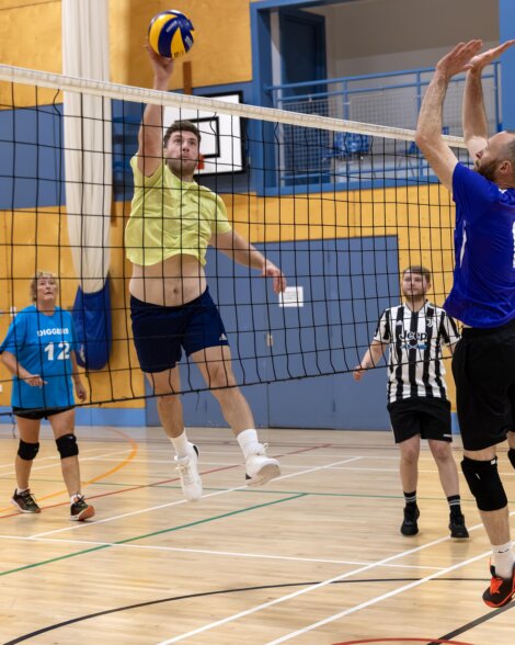 A well-placed hit from Ryan Jamieson tied it once more at 22–22, but Steven Leask rose to the occasion, delivering three unstoppable outside attacks to seal the set 25–22 for Benchwarmers.