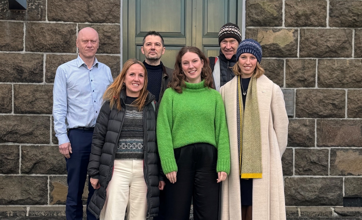 Left to right: Jan Petterson, Laurie Goodlad, Roker Tummasarson, Torshavn mayor Elsa Berg, and John Goodlad.