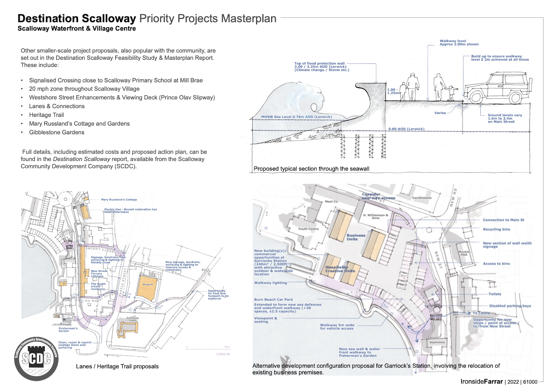 Lead consultant Julian Farrar of Ironside Farrar said: “We are pleased to be able to continue our involvement in this important project and look forward to working with SCDC and stakeholders in developing the detailed design, securing support and consents, and setting out a phased delivery plan for what will be a significant opportunity to safeguard and enhance the future resilience and prosperity of Scalloway.”