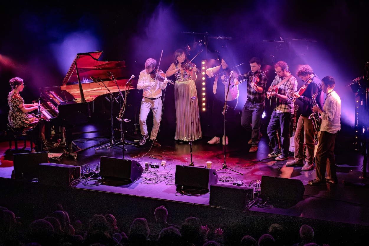 Everyone was back onstage again and after we were treated to somewhat rare Shetland jigs, the musicians welcomed Claire and Yolanda to the stage for the last toe-tapping flurry.
