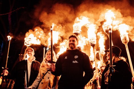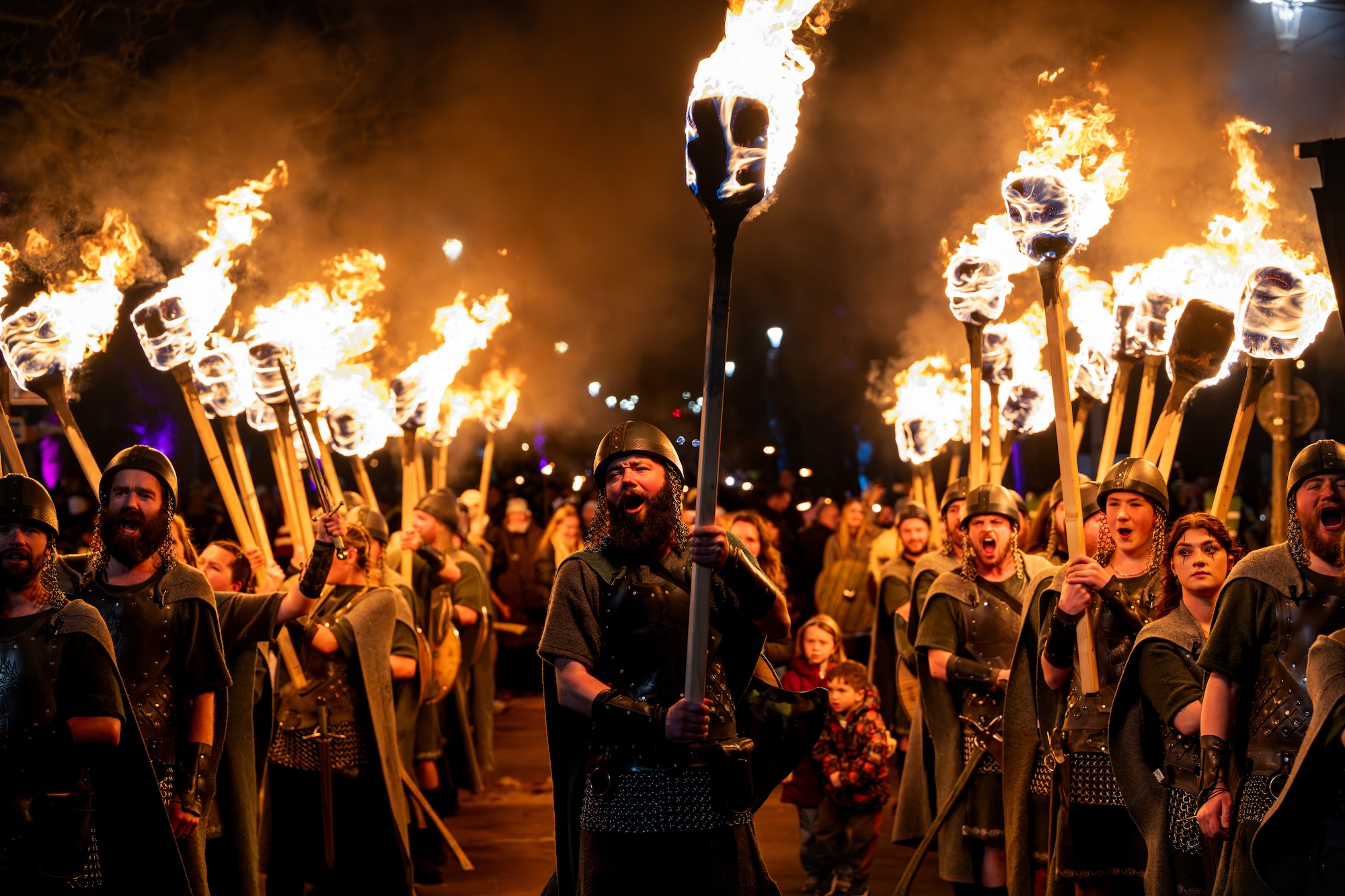 The torchlit parade was led by Hearts and Scotland goalkeeper Craig Gordon, who incidentally is said to have family links to Unst.