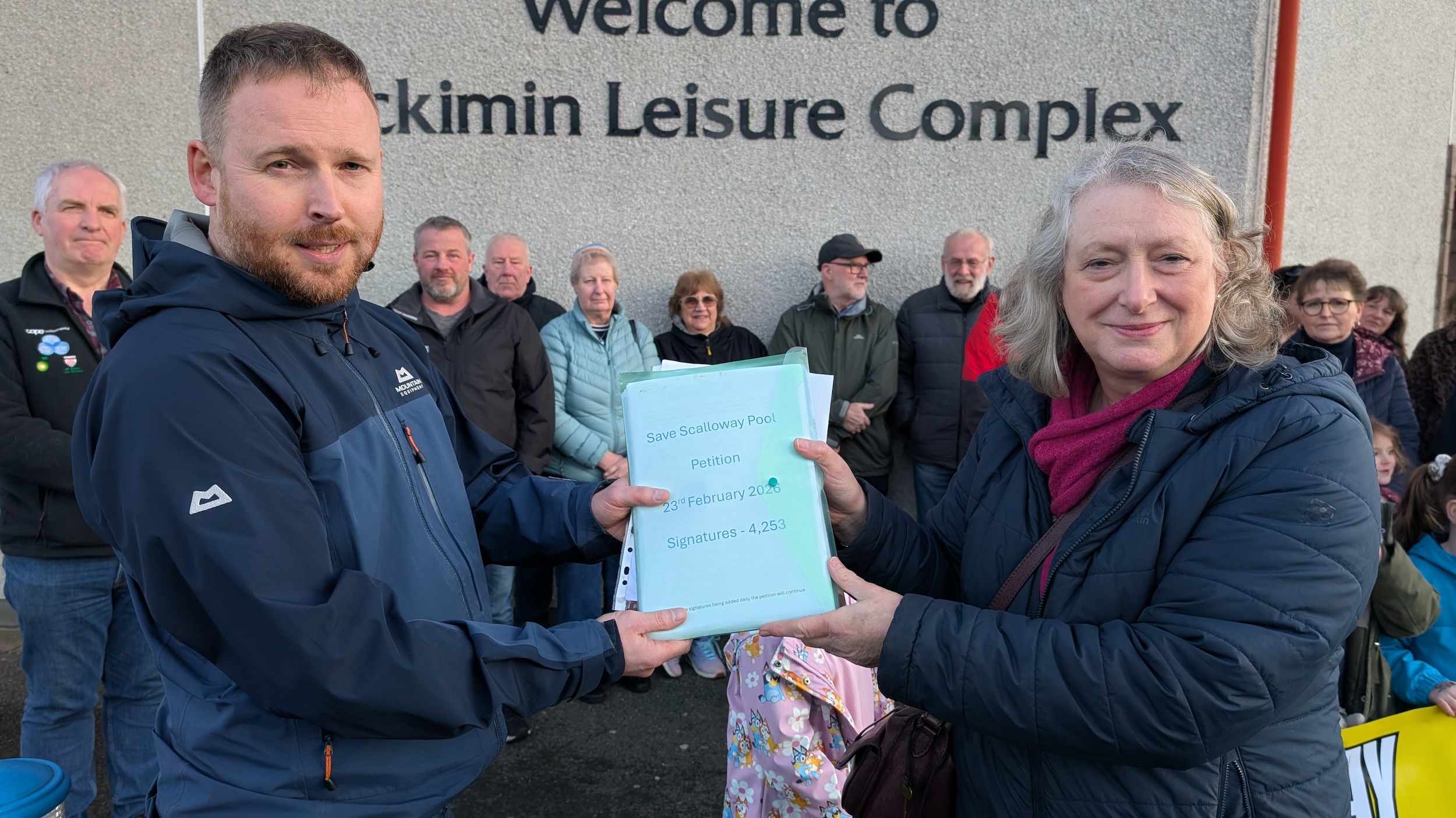 He was speaking after receiving a petition – containing more than 4,200 signatures – from the Save Scalloway Pool campaign group, who met for a handover outside the Clickimin on Monday evening prior to an SRT board meeting.