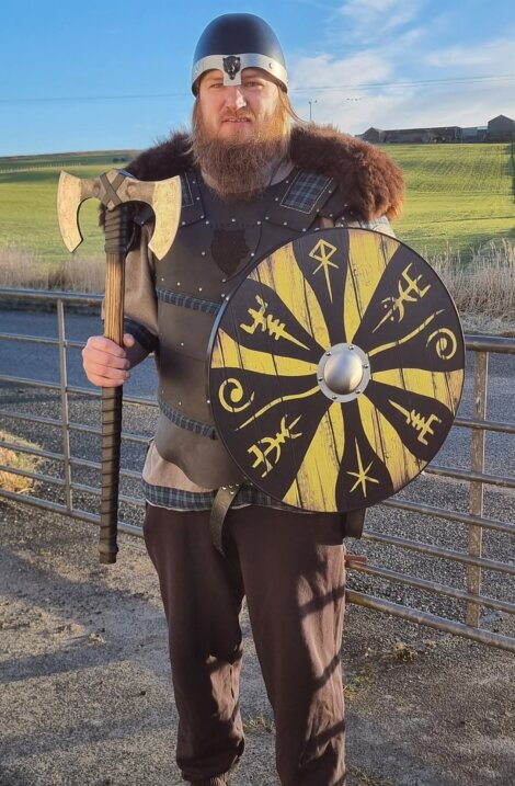 For the day he is becoming Magnus Olafsson – a former King of Norway in the late 10th century, who raided Scotland and picked up some of their fashion, culture and language.