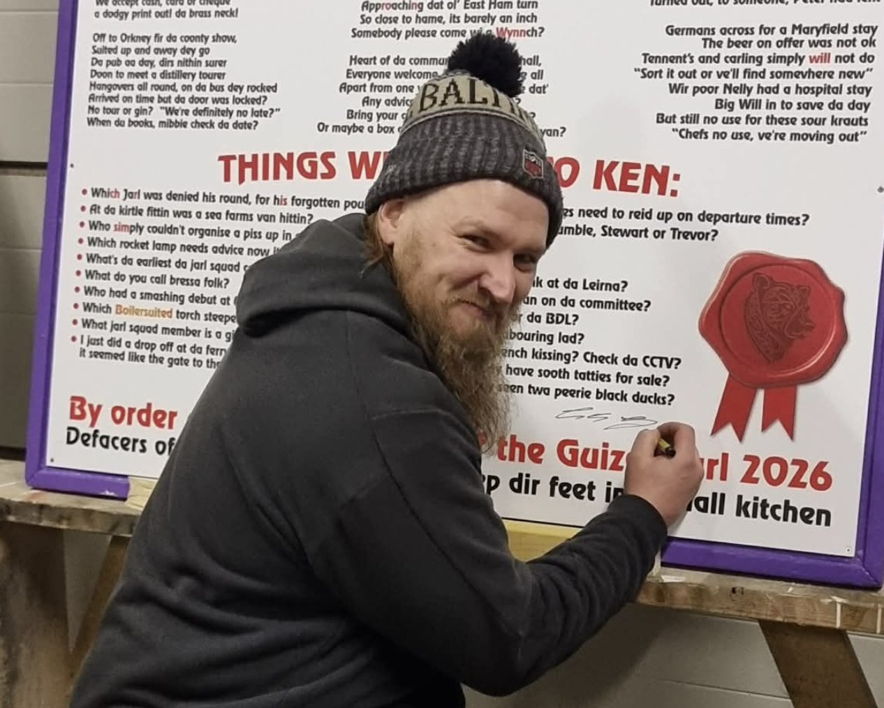 The jarl will be joined by 27 adults and five bairns on his big day, with the squad entirely made up of friends – and with family coming from the mainland to watch it all unfold.
