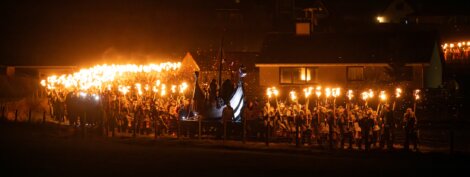 SANDWICK was illuminated with a fiery glow last night (Friday) as the South Mainland Up Helly Aa procession lit up the village.