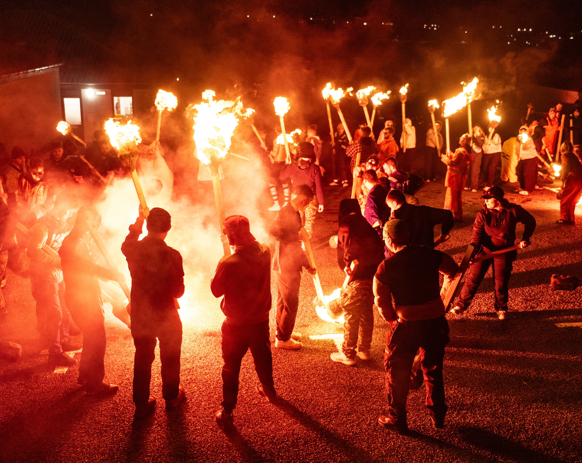 The burning of Moder Dy on Friday night signalled the start of a night’s celebrations around halls and venues across the North Mainland, with all of the squads preparing to make their rounds for a dance and party.