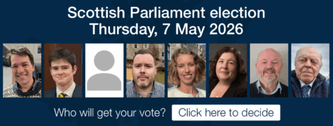 The other candidate standing in the Scottish Parliament election on 7 May are, in alphabetical order: Alex Armitage (Greens), Douglas Barnett (Conservatives), Vic Currie (Reform), John Erskine (Labour), Brian Nugent (Alliance to Liberate Scotland) and Peter Tait (independent).
