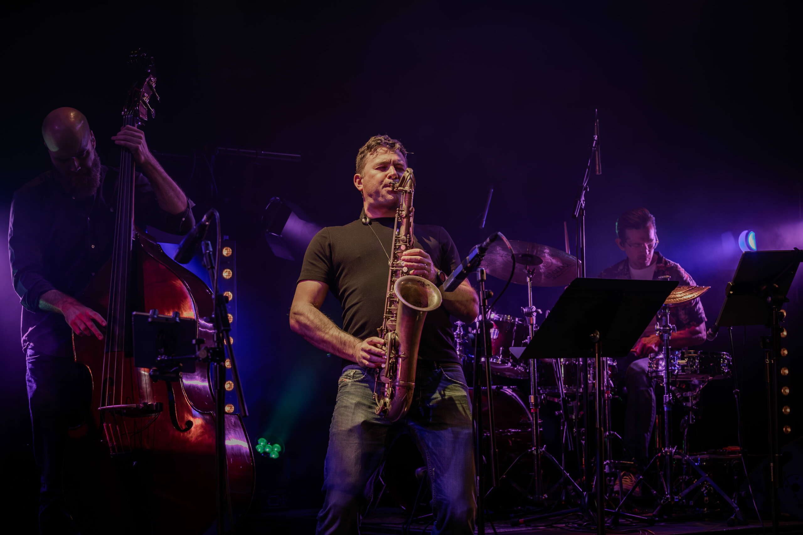 One of the things I love about jazz is how much each performer clearly loves their chosen instrument and that sheer joy was evident in spades last night. This was music played from the heart, carrying a message of love for this precious world we share, and expressed by a humble Cafolla encouraging us to take care of our land and each other, and asking why anyone would want to go to Mars when we live on such a beautiful planet with so much to explore, before launching into a gorgeous piece celebrating our whales, to be featured on their upcoming album Inner Space.
