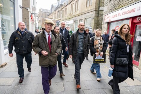 But he quashed those rumours in the most surprising fashion, arriving in to the centre of Lerwick with his party’s UK leader Nigel Farage on Tuesday morning.