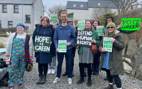 Ross Greer was the latest politician to arrive in the isles this week, knocking on doors with the Shetland Greens throughout Friday before a short media event in Lerwick’s Park Lane.
