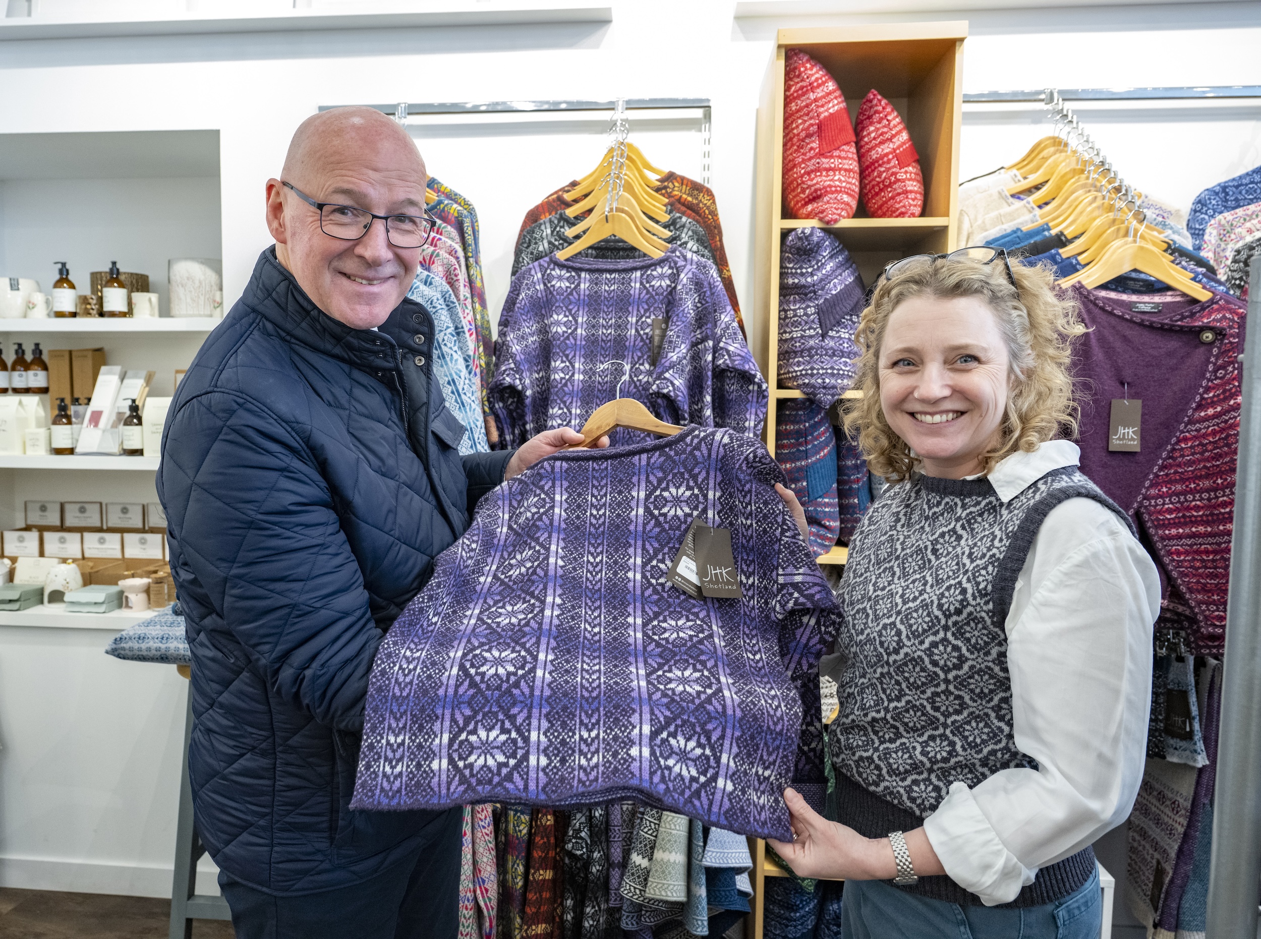 Here Swinney visited local shops including COPE Ltd’s Shetland Soap Company and Ninian.