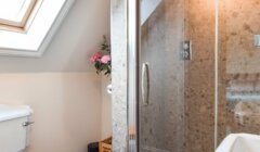 Finally the stair continues up to the second (top) floor where there are two further double bedrooms, both a good-size and en-suite, bedroom five ahead having Velux windows to the front and rear plus a further small window to the gable wall. The en-suite to the second room (bedroom six) has a WC and wash hand basin.